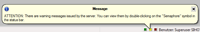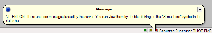 The SIHOT.PMS semaphore provides information as to any disturbances of the system within the hotel environment. Just like a traffic light, the semaphore – located at the bottom of the SIHOT.PMS screen - indicates in green, yellow and red lights the status of the system.