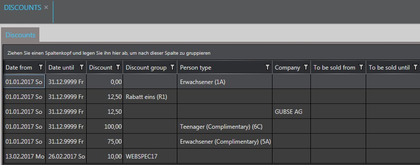 | FROM | Start date of the current discount record, might be smaller than the requested from-date if the discount record starts earlier | Date in ISO format |
