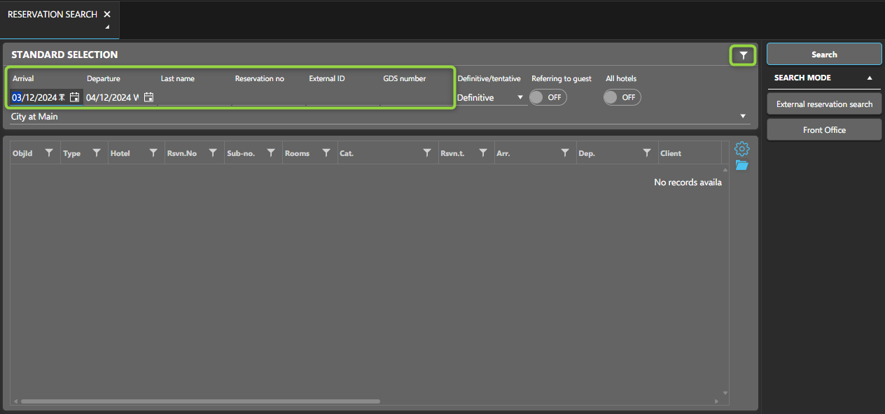 - Open the Reservation Search shortcut from the toolbar: